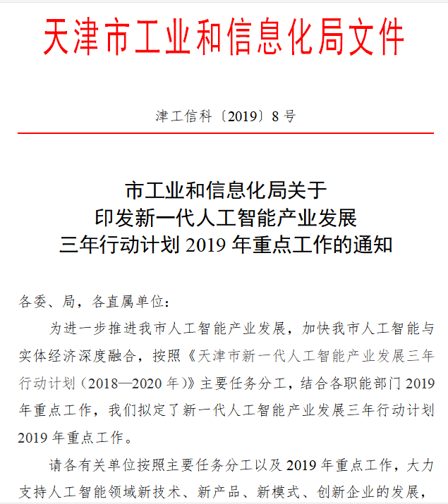 市工业和信息化局关于印发新一代人工智能产业发展三年行动计划2019年重点工作的通知